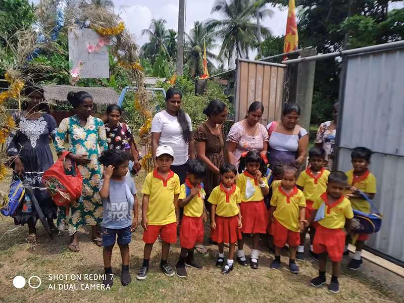 L’association ESF soutient financièrement le fonctionnement de l’école maternelle locale de Peraliya « Beauty Hearts », qui accueille 22 enfants. Cette aide participe au salaire de l’enseignante, aux repas des enfants, au transport scolaire en tuk-tuk, ainsi qu’à l’achat de fournitures scolaires, d’uniformes et de chaussures. Cette même école avait été reconstruite en 2005 avec l’aide d’ESF, suite au passage du tsunami.