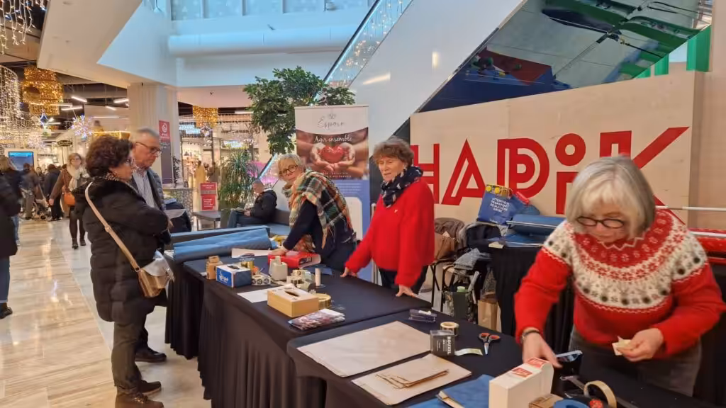 Pour la troisième année consécutive, l’association Espoir sans Frontières a eu le plaisir d’être présente au Centre Commercial Grand Quartier à Rennes durant la période des fêtes. Grâce au stand papiers cadeaux, nos bénévoles ont emballé avec soin les achats des visiteurs tout en récoltant des fonds destinés à soutenir nos actions humanitaires.